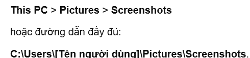 Ảnh chụp màn hình sẽ được thực hiện việc lưu tại đường dẫn mặc định sau: