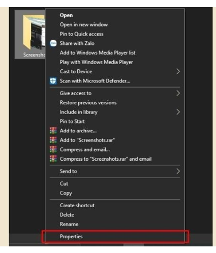- Bước 2: Bạn thực hiện nhấp chuột phải vào thư mục Screenshots và thực hiện việc chọn Properties.