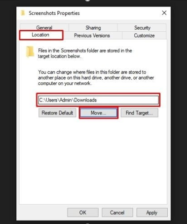 - Bước 4: Bạn thực hiện nhấn vào nút Move… và thực hiện việc chọn thư mục mới mà bạn muốn làm nơi lưu mặc định.