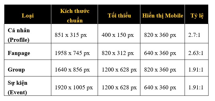 Những kích thước dành cho ảnh bìa Facebook chuẩn 2025