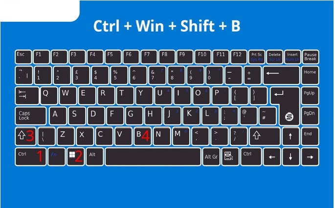 Đây được coi là phương pháp đơn giản nhất. Vì nó có thể làm mới được driver card màn hình ở trên Windows 10 và cả Windows 11. Được dùng đồng thời tổ hợp phím Windows + Ctrl + Shift + B. Để thực hiện điều đó thì bạn chỉ cần nhấn đồng thời vào tất cả bốn phím này và giữ nó trong khoảng một giây. Trong quá trình thực hiện của việc reset, màn hình có thể nhấp nháy hay là tối đen trong một khoảnh khắc ngắn. Và kèm theo cả tiếng bíp nhẹ. Đây là một dấu hiệu bình thường để cho thấy driver đang được thực hiện việc khởi động lại.