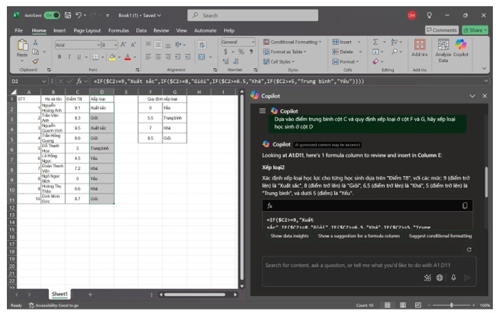 Việc phải đối mặt với một bảng tính chi chít số liệu. Hay là việc bạn quên hàm sẽ không còn là nỗi ám ảnh. Bạn có thể nhờ Copilot thực hiện thống kê lại số liệu, gợi ý hàm hay là thậm chí viết hàm giúp cho bạn.