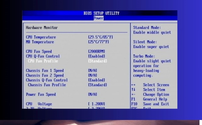 Sau khi bạn thực hiện truy cập BIOS thành công. Bạn hãy dùng phím mũi tên ở trên bàn phím để di chuyển được qua các mục cài đặt. Bạn hãy tìm đến mục Power, Hardware Monitor hay là PC Health Status (tên gọi có thể khác nhau tùy vào mainboard hay laptop). Bạn hãy nhấp vào Enter để mở.