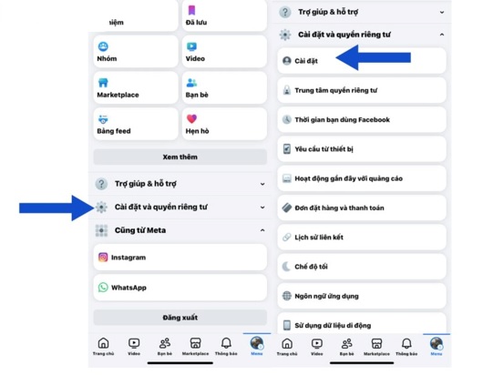 - Bước 1: Bạn nhấn vào Mở ứng dụng Facebook. Rồi đăng nhập vào tài khoản cần khóa. Sau đó, bạn nhấn vào Menu (biểu tượng ba dấu gạch ngang) ở góc phía dưới bên phải (iPhone) hoặc là trên cùng bên phải (Android). Tiếp tục bạn chọn mục Cài đặt & quyền riêng tư. Rồi nhấn Cài đặt.