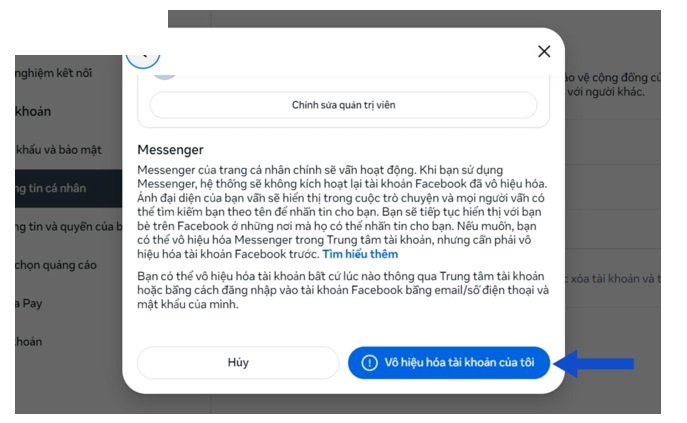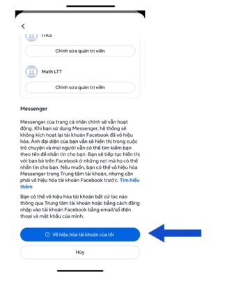 Bước 7: Cuối cùng, bạn xác nhận lại thao tác bằng cách nhấn Vô hiệu hóa tài khoản của tôi.