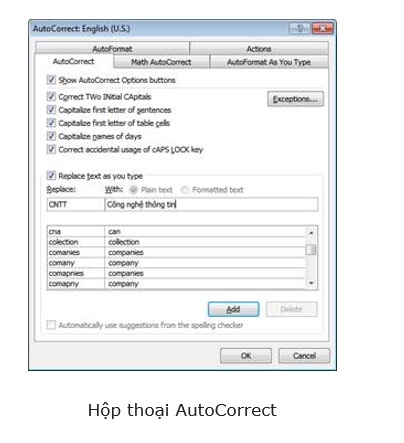 Hai là tính năng sửa lỗi tự động (AutoCorrect)