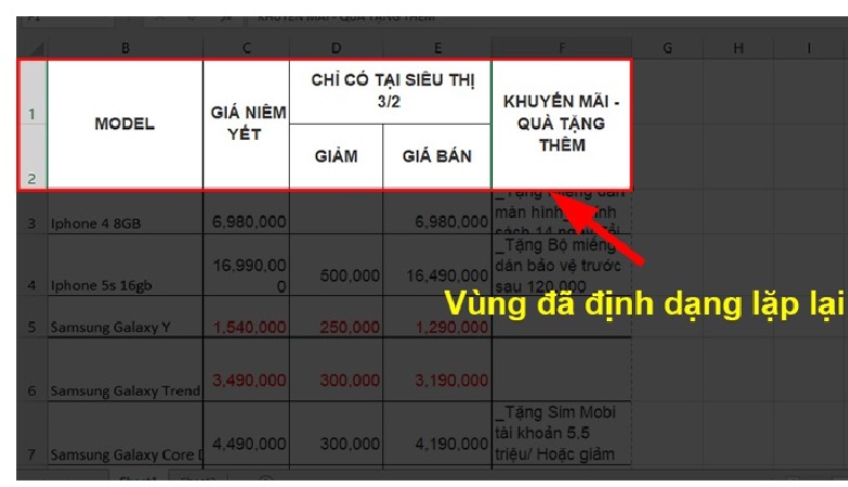 Thực hiện việc lặp lại tiêu đề trong Excel khi in