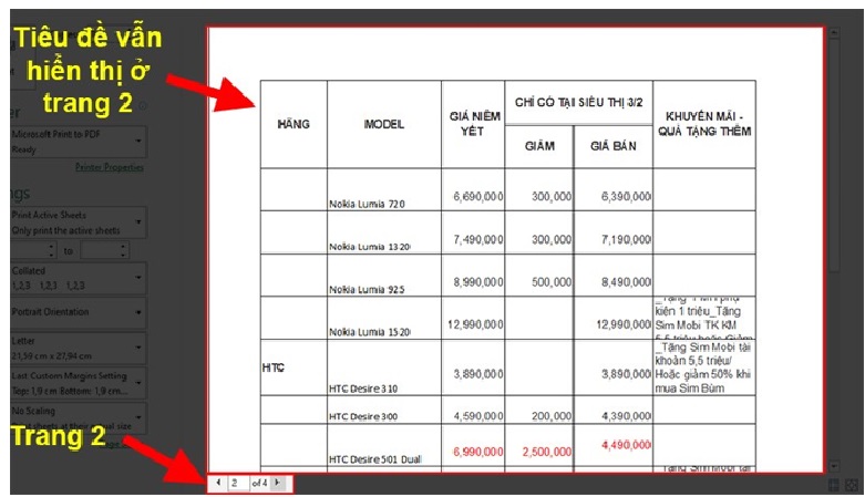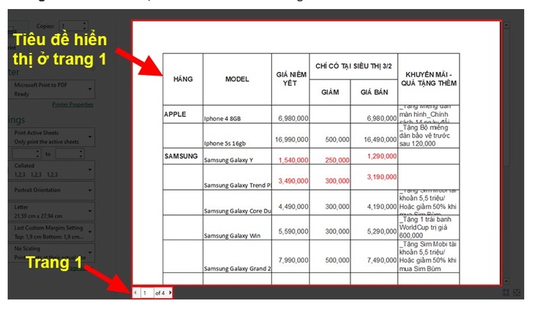 3. Hướng dẫn cách để xóa (bỏ) lặp lại tiêu đề khi in