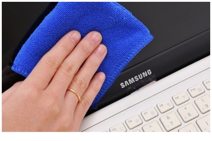 • Bước 3: Bạn dùng mặt khăn khô còn lại để thực hiện lau lại ngay lập tức. Tiếp sau đó nghiêng màn hình ở phía dưới ánh sáng để thực hiện kiểm tra kỹ xem còn bụi hay là vết bẩn trước khi bật máy hay là không nhé.
