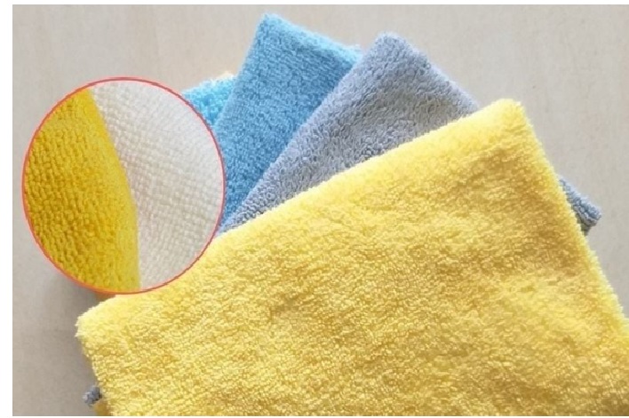 • Thứ 1 là Khăn vi sợi Microfiber: Vì nó có đặc điểm là sợi vải siêu nhỏ và mềm. Nó giúp thu gom được bụi bẩn hiệu quả mà không gây ra xước dăm bề mặt.
